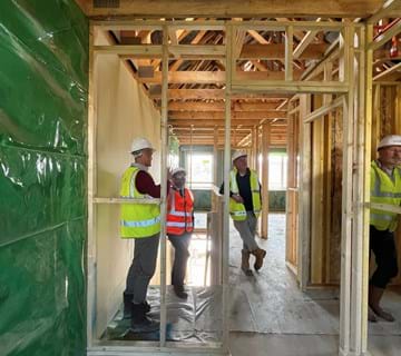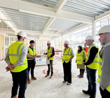 Although the homes are still under construction, the group had the opportunity to step inside one of the new four-bedroom properties to view the timber frame construction, spacious internal layout, and large windows that will make the homes feel light and airy.